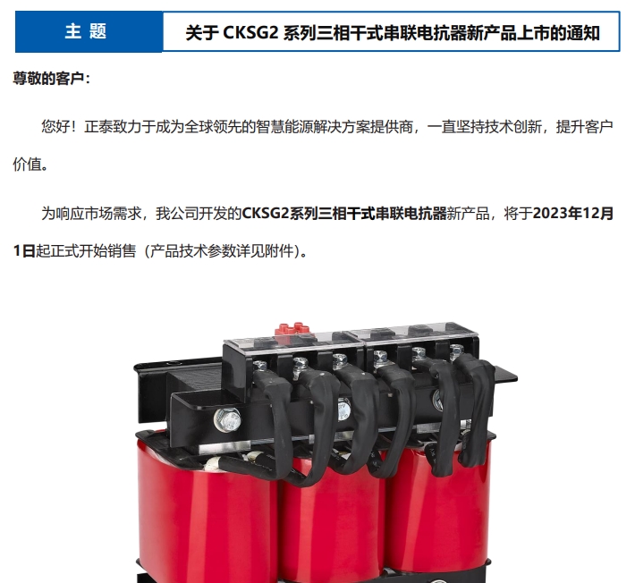 關(guān)于 CKSG2 系列三相干式串聯(lián)電抗器新產(chǎn)品上市的通知