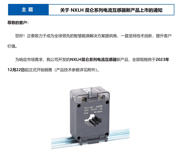 關(guān)于 NXLH 昆侖系列電流互感器新產(chǎn)品上市的通知