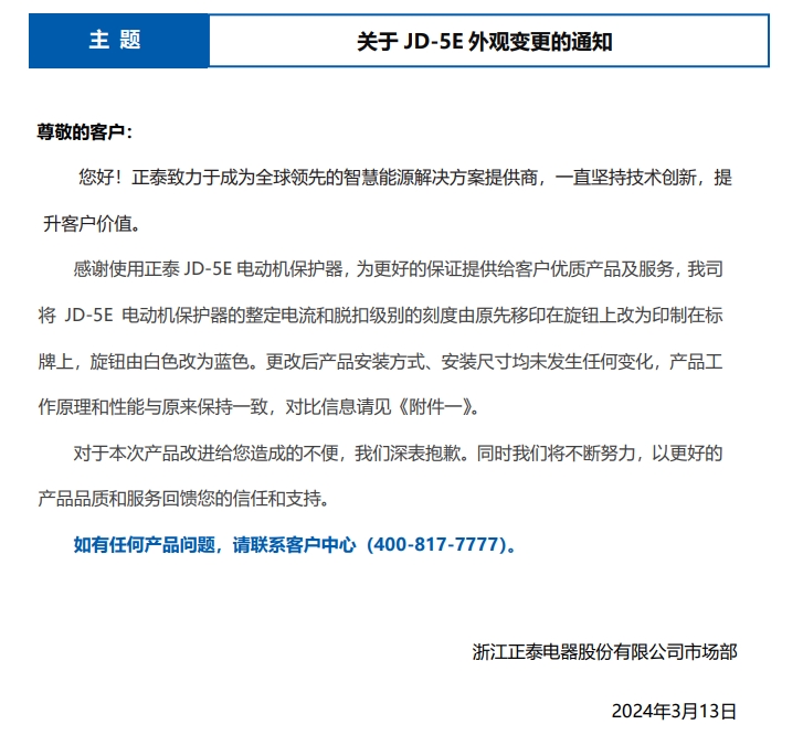 關(guān)于 JD-5E 外觀變更的通知