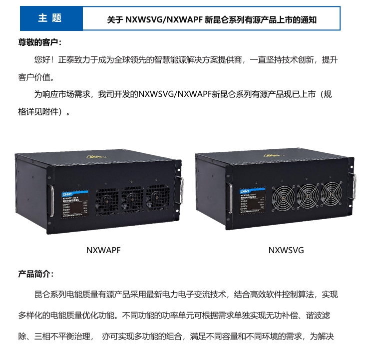 關(guān)于NXWSVG/NXWAPF新昆侖系列有源產(chǎn)品上市的通知