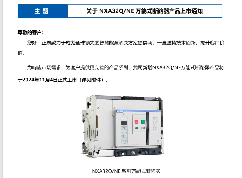 關(guān)于 NXA32Q/NE 萬(wàn)能式斷路器產(chǎn)品上市通知