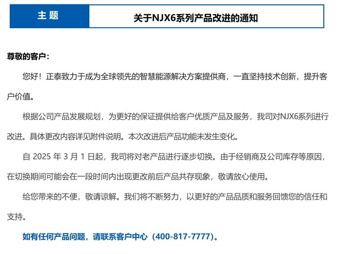關(guān)于NJX6系列產(chǎn)品改進的通知