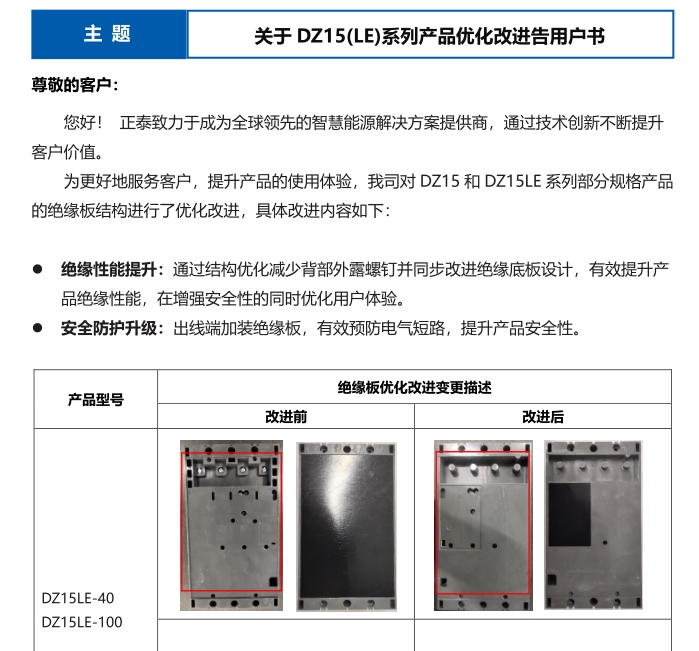 關(guān)于 DZ15(LE)系列產(chǎn)品優(yōu)化改進(jìn)告用戶書