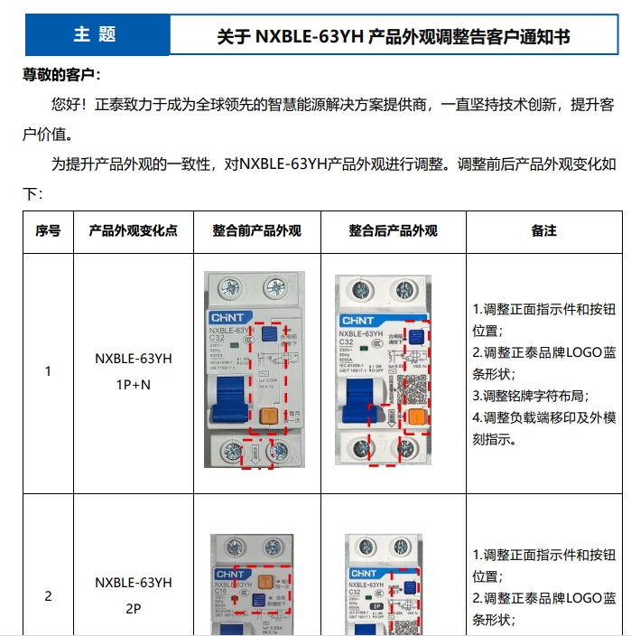 關于 NXBLE-63YH 產品外觀調整告客戶通知書