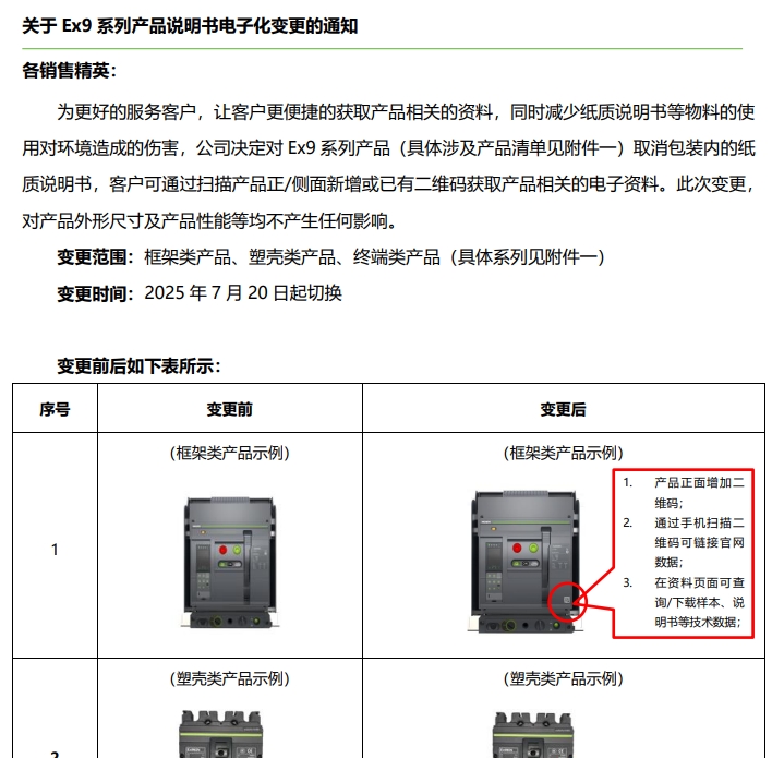 關于 Ex9 系列產品說明書電子化變更的通知