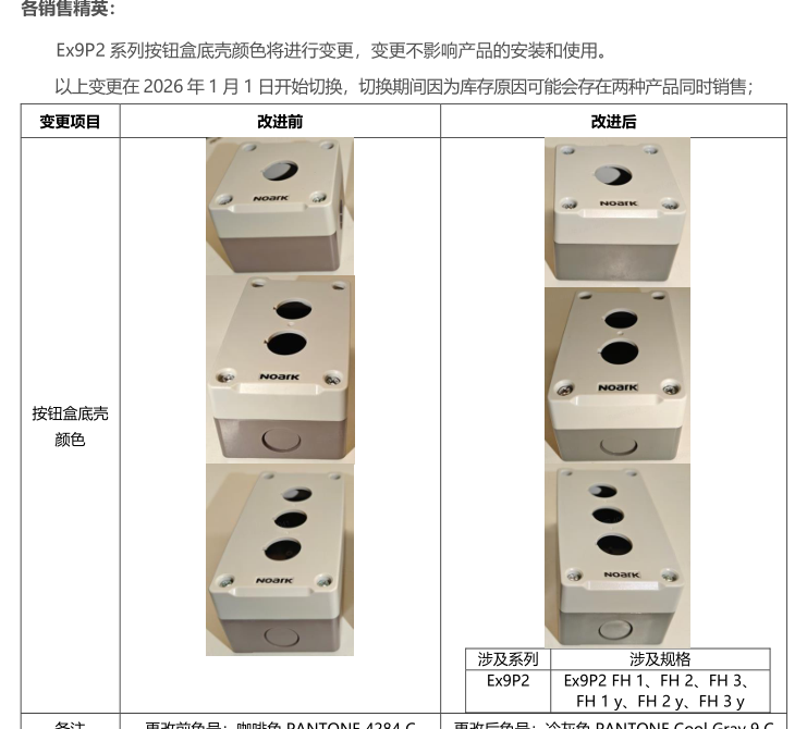 關(guān)于 Ex9P2 系列按鈕盒底殼顏色變更的通知