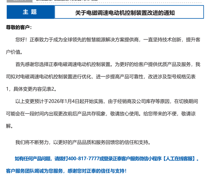 關于電磁調(diào)速電動機控制裝置改進的通知
